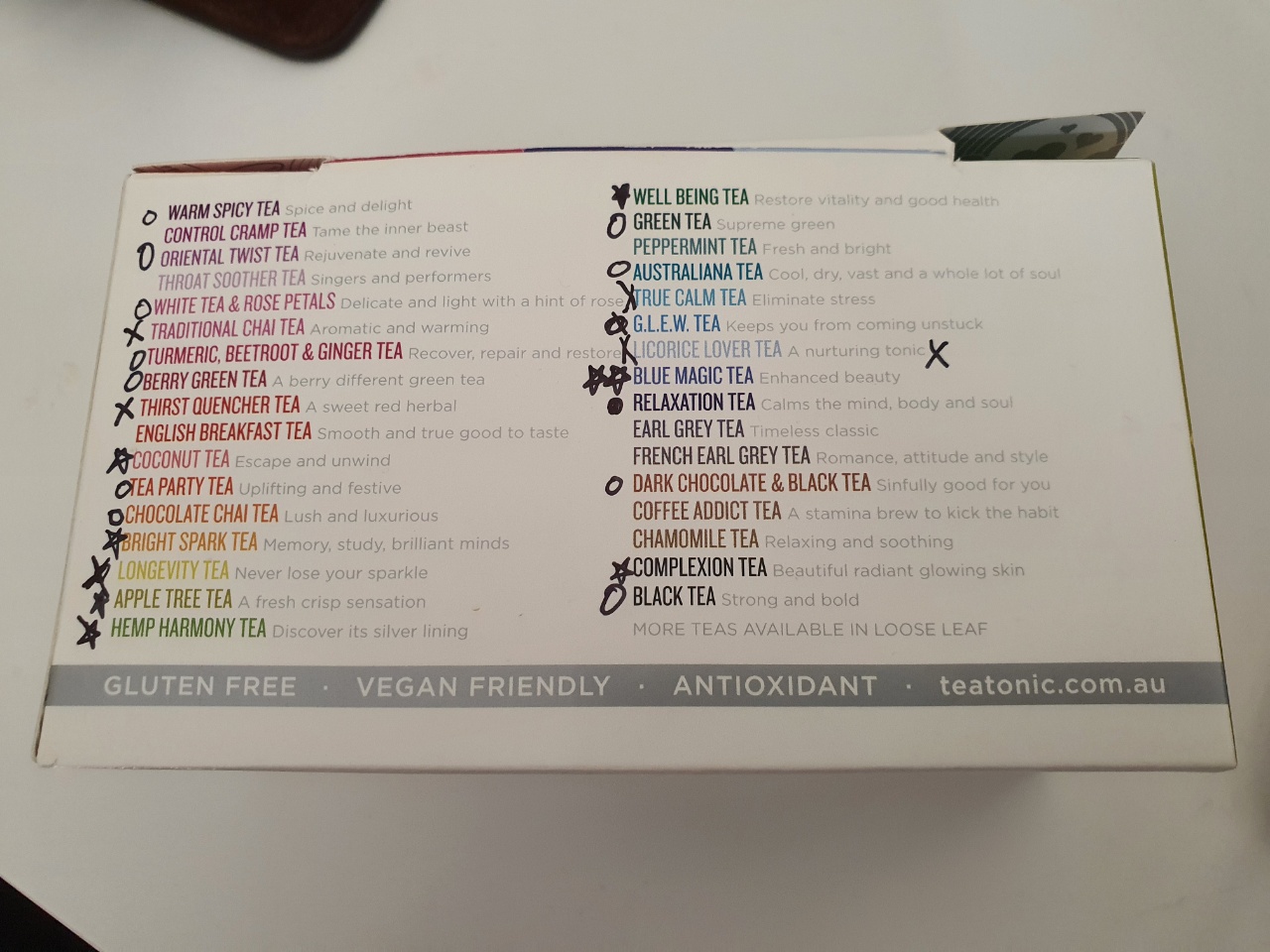 티 토닉(Tea Tonic)이라는 호주 브랜드에서 나온 건데, 32가지 종류의 차가 하나씩 들어 있다.