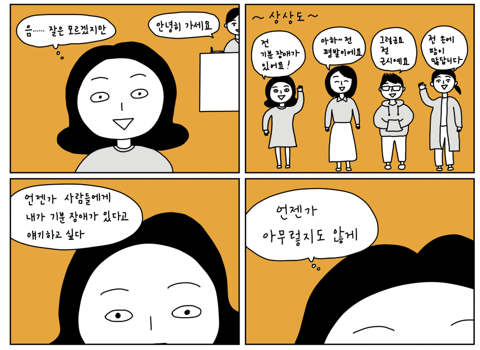 만화는 이런 느낌. 기분장애를 처음 접하는 (본인이 기분장애가 있거나, 아니면 아는 사람이 기분장애를 앓고 있거나 하는 이유로) 이들이 공감할 만한 이야기를 다루고 있다.