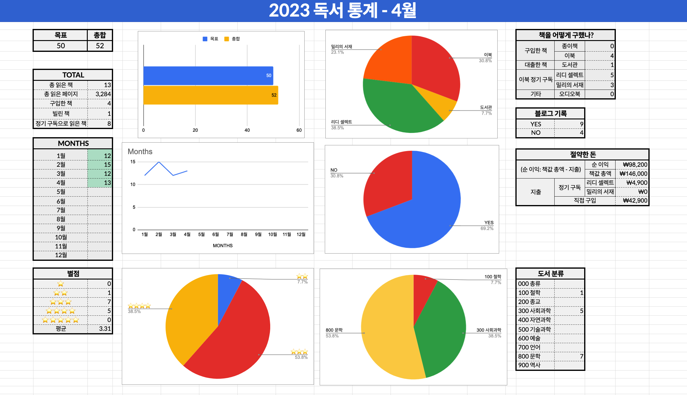 와, 2023년 첫 넉 달간 읽은 책이 52권이나 되니 목표는 다 채웠다. 이제 더 이상 책 안 읽어도 될 듯 🤣 그럴 일은 없겠지만.