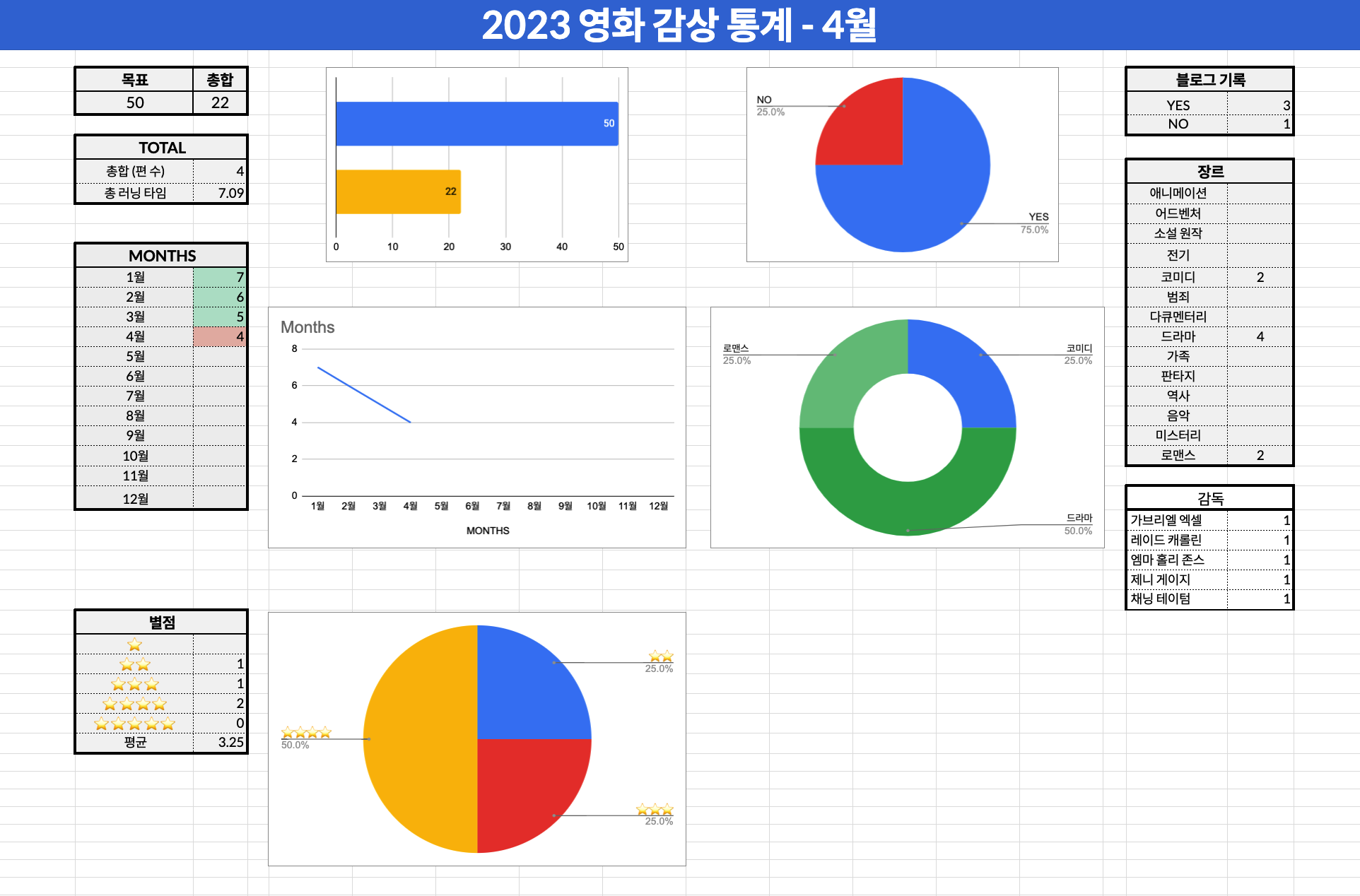 2023년 4월에 본 영화들 통계