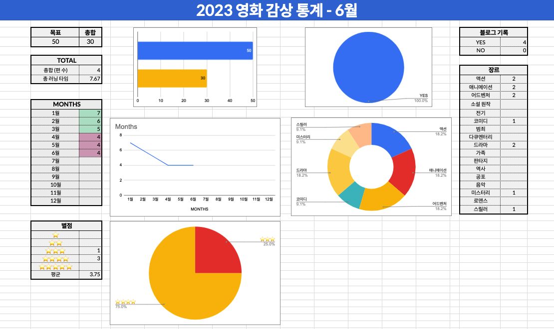 2023년 6월에 본 영화들 통계