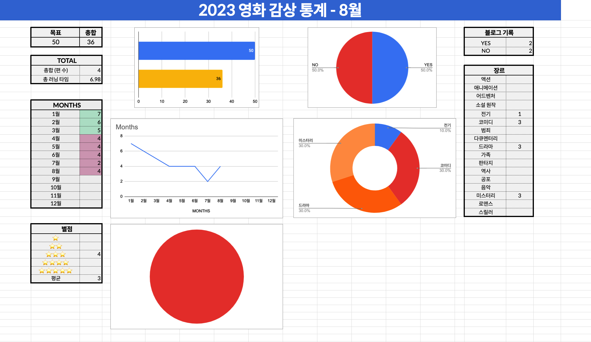 2023년 8월에 본 영화들 통계