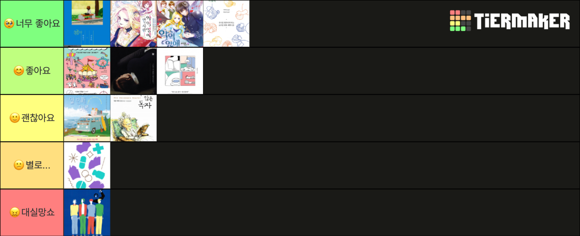 이번 달부터는 챌린지 대신에 한 달간 읽은 책들의 랭킹을 정해서 보여 드리는 코너를 하기로 했다(참고로 왼쪽의 등급(’너무 좋아요’, ‘좋아요’ 등…)은 그때그때 내 기분과 상황에 따라 바뀔 수 있다). 이렇게 만들어서 보니까 내가 뭘 좋아했고, 뭘 별로라고 생각했는지 좀 더 눈에 확 들어와서 좋다. 위의 책 리뷰들을 다 읽지 않아도 이것만 보면 직관적으로 책에 대한 아이디어를 얻을 수 있겠지? ㅎㅎ 무척 뿌듯하다. ‘너무 좋아요’로 분류한 이 네 권만큼은 내 블로그 독자님들이 꼭 한번 눈길이라도 주셨으면!