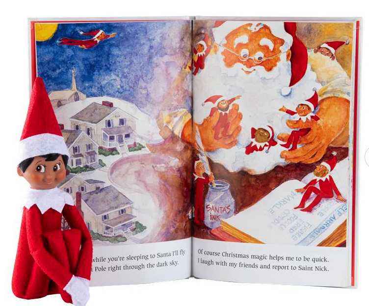 이런 엘프가 매년 크리스마스 시즌만 되면 각 집안을 장식하는 존재가 된다. 캐롤 에버솔드(Carol Aebersold)가 쓴 동명의 책 <선반 위 엘프>에서 유래한, 비교적 최근에 생긴 전통인데, 내용은 대략 이러하다. 스카우트(scout), 그러니까 정찰병 엘프가 해 떠 있을 때는 얌전히 숨어 있다가 다들 잠든 시간이 되면 북극으로 가서 산타에게 그날 있었던 일(누가 착한 아이이고 누가 나쁜 아이인지, 누가 뭘 했는지 등등)을 보고한다. 그러고 나서 다시 새로운 하루가 시작되기 전, 엘프는 북극에서 다시 사람들의 집으로 돌아가 새로운 곳에 숨는다. 일종의 숨바꼭질 놀이인 셈이다. 그리고 이 정찰병 엘프는 아이가 이름을 정해 주고 사랑해 주면 마법의 힘을 얻는다고 한다.