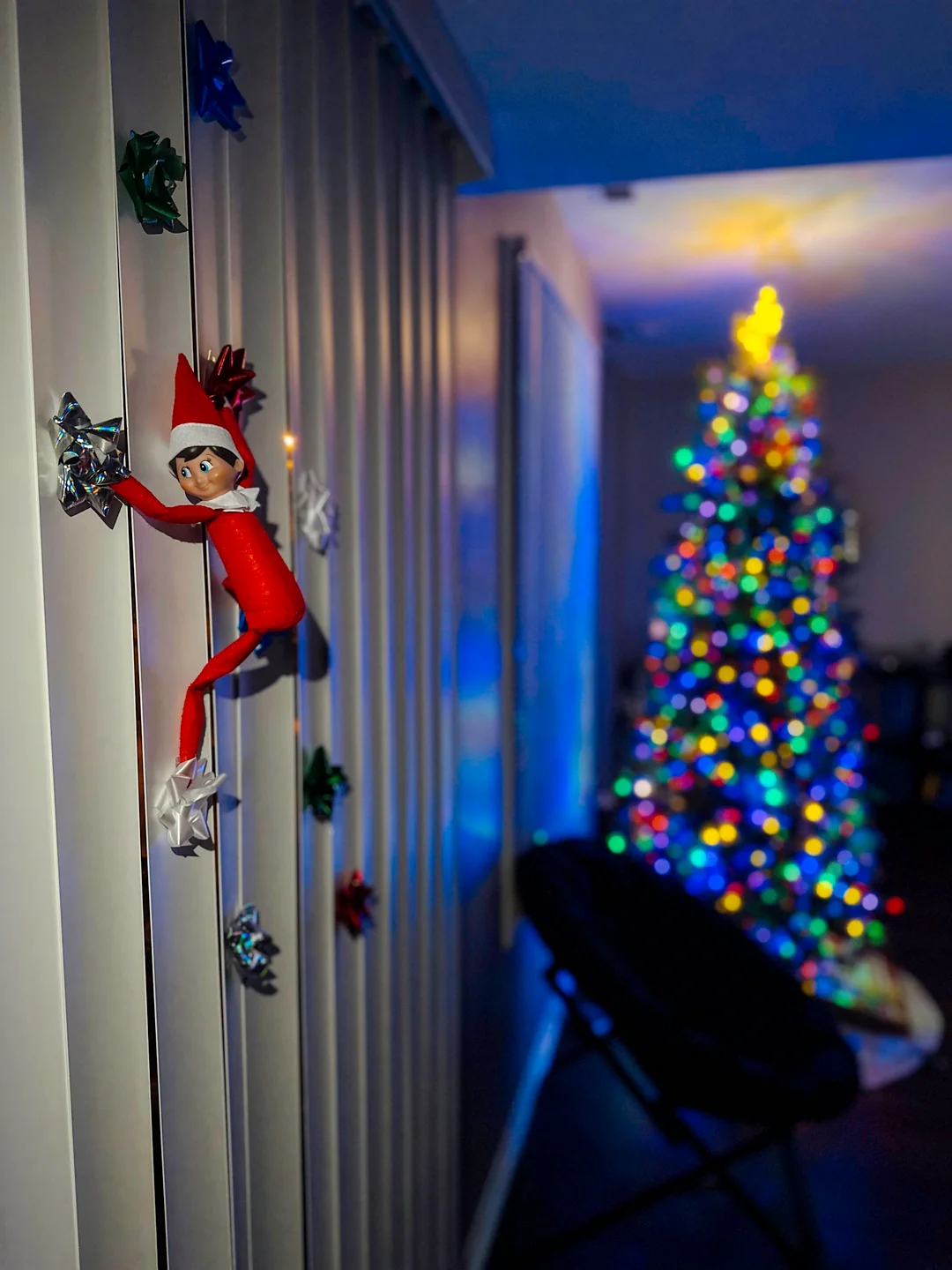 크리스마스트리에 매달린 엘프.