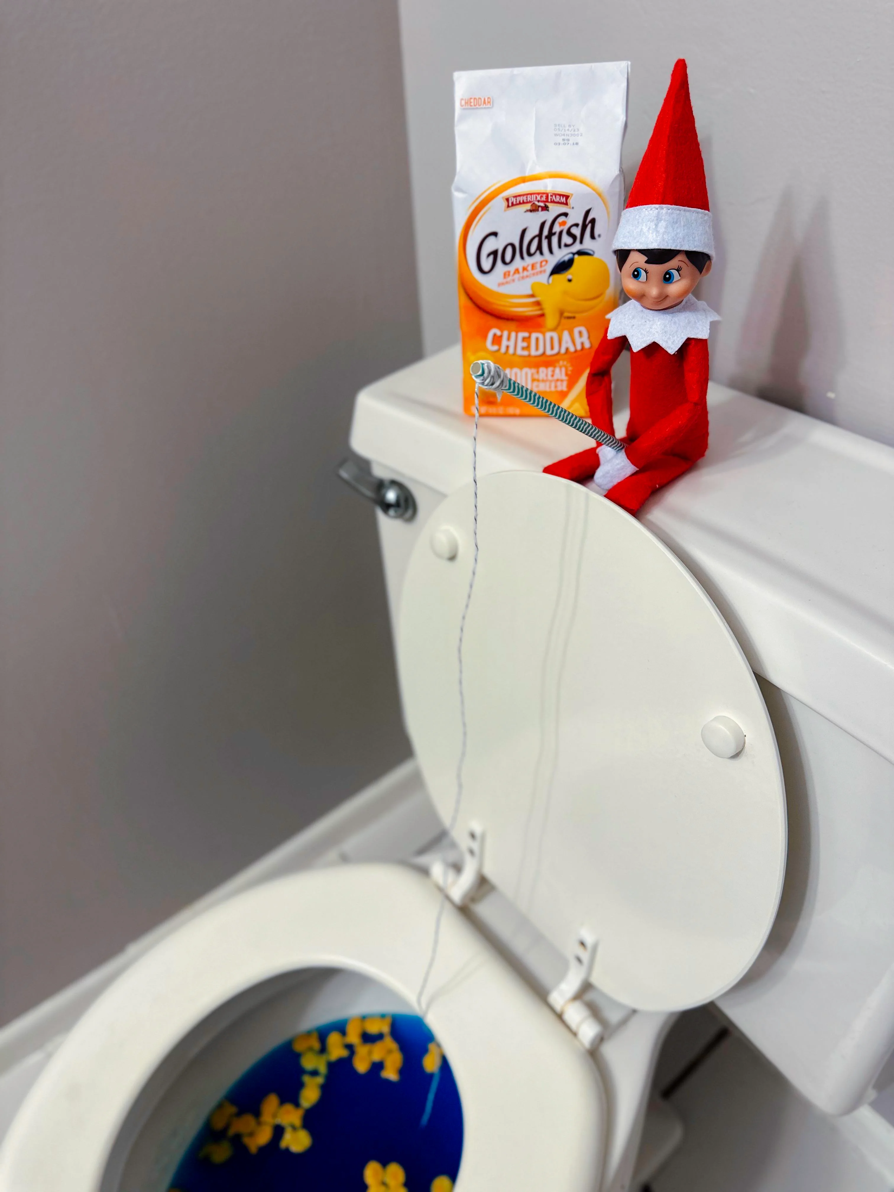화장실 변기 위에 자리잡은 엘프. 참고로 엘프 옆에 있는 ‘골드피시’ 과자는 ‘고래밥’ 과자의 원조격이다.