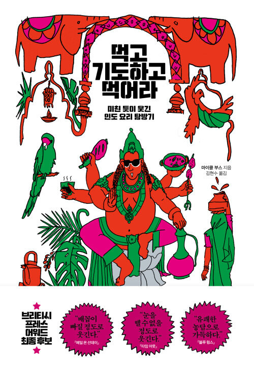 여행과 음식에 대해 주로 쓰는 저널리스트인 저자가 인도에 여행 간 이야기. 제목은 ‘먹고 기도하고 먹어라’이지만 정확하게 말하면 먹는 얘기, 인도 음식 얘기보다는 종교적인 얘기가 더 많이 나온다. 저자가 종교인인 건 아니고 종교적인 것 또는 영성적인 것을 못 참는 사람인데, 아내 손에 끌려서 강제로 접하게 된 요가 수업을 통해 알코올 중독에서 벗어난 덕분이다.