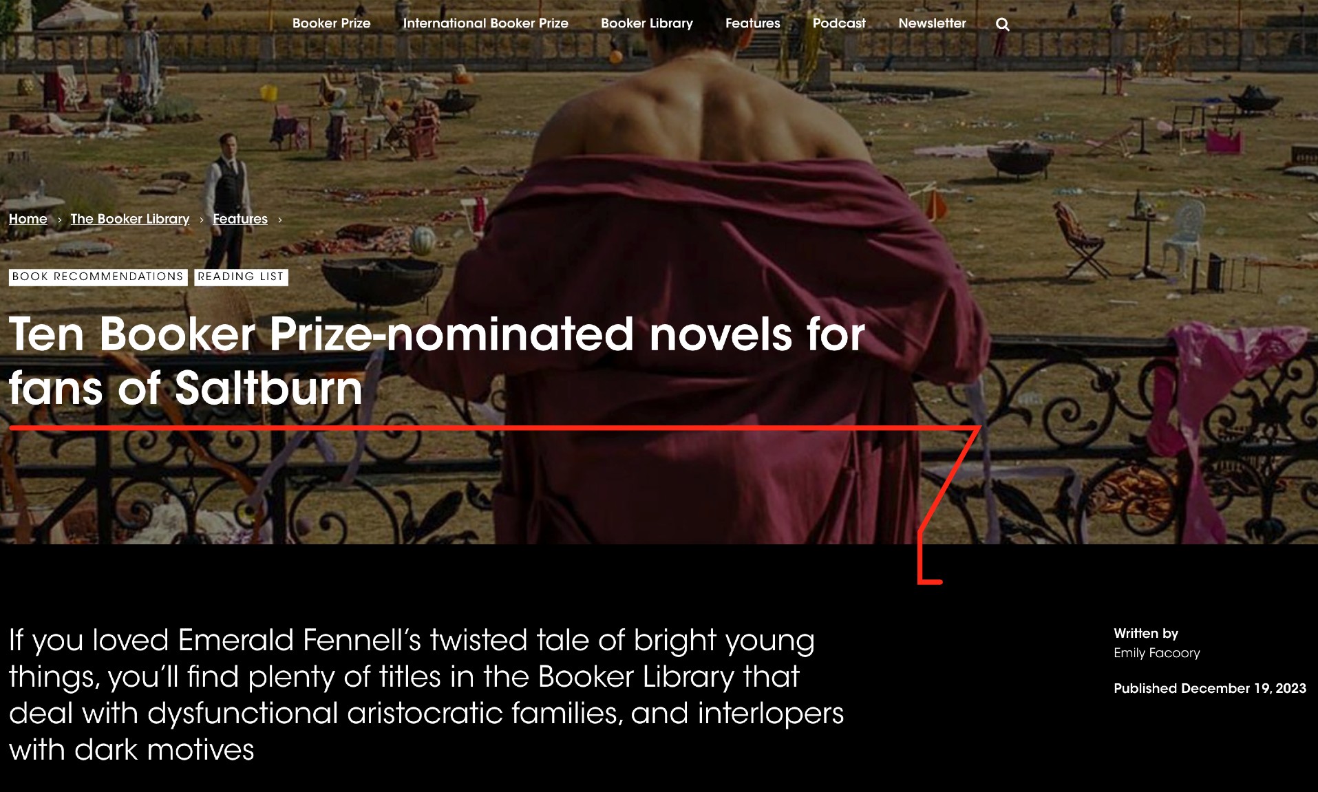 2023년 12월에 올라온 ‘영화 <솔트번>의 팬들을 위한 부커상 후보작 10편’ 포스트는 제목만큼이나 흥미로운 책들을 추천한다. <Saltburn(솔트번)>(2023) 리뷰는 나도 쓴 적이 있는데, 이 포스트는 역시 내가 재미있게 읽은 오인칸 브레이스웨이트의 <언니, 내가 남자를 죽였어>도 추천했다. 신뢰도 UP!