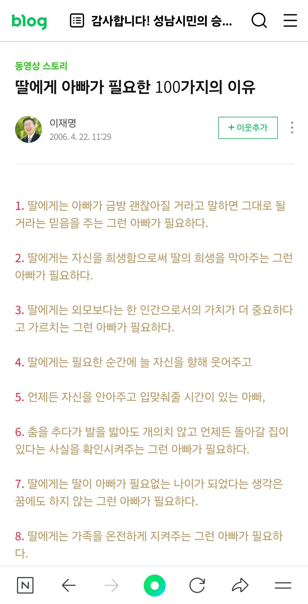 보통 사람들이 딸을 원한다고 할 때 대는 이유는 ‘딸은 애교가 많고 귀여우니까’, ‘딸은 말썽부리지 않고 사랑스러우니까’ 하는, 어떻게 보면 그 딸이 자신에게 무엇을 해 줄까에 관한 것들이다. 하지만 이 글은 아빠가 딸에게 무엇을 해 줄 수 있는지, 딸에게 어떤 것이 필요한지를 100가지나 나열한다. 맞다. 딸에게는 이런 아빠가 필요하다. 릴리가 그랬던 것처럼. 자기 친부에게 못 받은 사랑을 아빠랑 이름만 같은 다른 남자, 친척도 아닌 이에게 받는다는 게 안타깝기도 하고 다행이기도 하고… 단 한 명, 자기에게 애정을 주는 이가 있다면 사람은 언제든 치유받을 수 있구나… 이 세상 모든 딸들이 아빠에게 사랑받고 행복하기를… 🥹