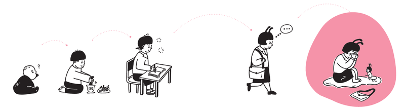 나라고 일개미의 숙명을 타고난 건 아니다. 어린 시절 딱히 일개미로서의 자질이 엿보인 적도 없다. 일개미 탄생 설화에 걸맞을 에피소드라면 네 살 때부터 엄마를 도와 마늘을 깐 것, 초등학교 졸업식 날 개근상을 탄 것, 반장은커녕 돌아가면서 맡는 줄반장조차 하기 싫다고 읍소할 정도로 감투 공포증이 있었다는 것 정도일까. (...)