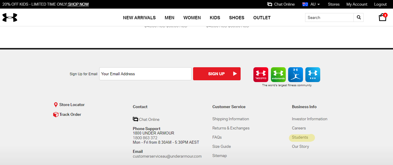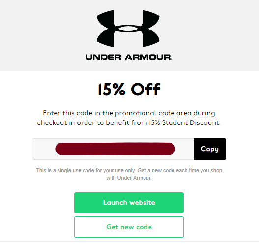 위와 같은 방법을 써도 되고, 아니면 언더 아머 웹사이트에서 'Student' 페이지를 찾아 들어가 거기에서 내 코드를 받아도 된다.